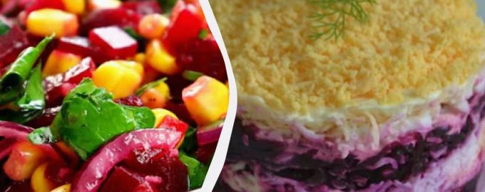 Se fierbe sfecla până se fierbe, apoi se răcește și se decojește. Se taie în cuburi mici, se pun într-un bol de salată. Adăugați inele feliate de ceapă sau ceapă roșie, usturoi tocat și ierburi, porumb. Umpleți salata cu ulei vegetal, sare, piper, amestecați. Aceasta este o opțiune excelentă, cum să pregătiți o salată cu sfeclă, dacă aveți un minim de timp și produse – tot ce aveți nevoie este în cămara fiecărei hostess.
