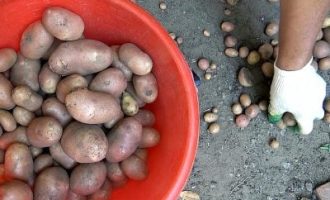 - umpleți sacii cu frunze sau, opțional, aranjați-i în straturi – frunze căzute, o cantitate mică de pământ, apoi buruieni sau iarbă, apoi din nou frunze căzute;